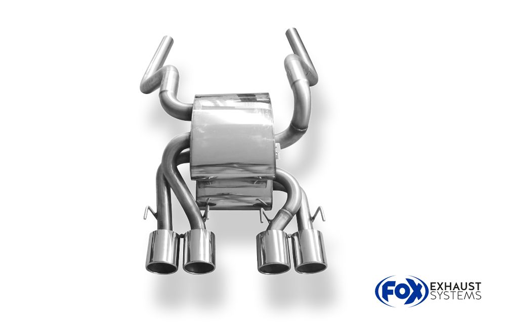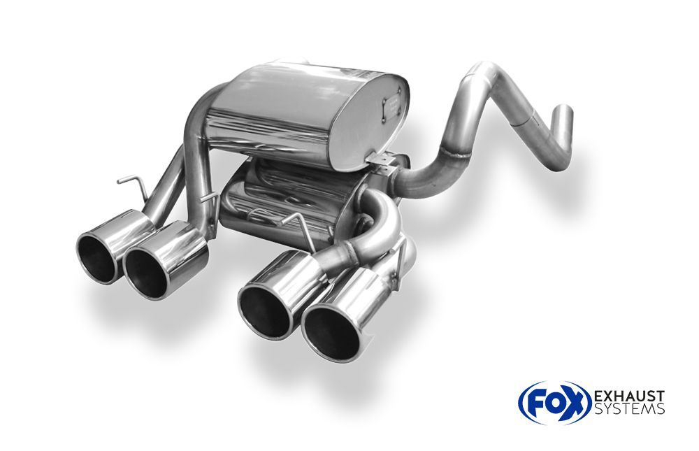 Der Fox Endschalldämpfer für die Corvette C06 setzt mit seinen vier mittigen 100-mm-Endrohren (Typ 12) ein deutlich sportliches Statement. Die Anlage wird aus hochwertigem Edelstahl gefertigt, bietet eine präzise Passform und sorgt für einen kernigen, sauberen Klang.