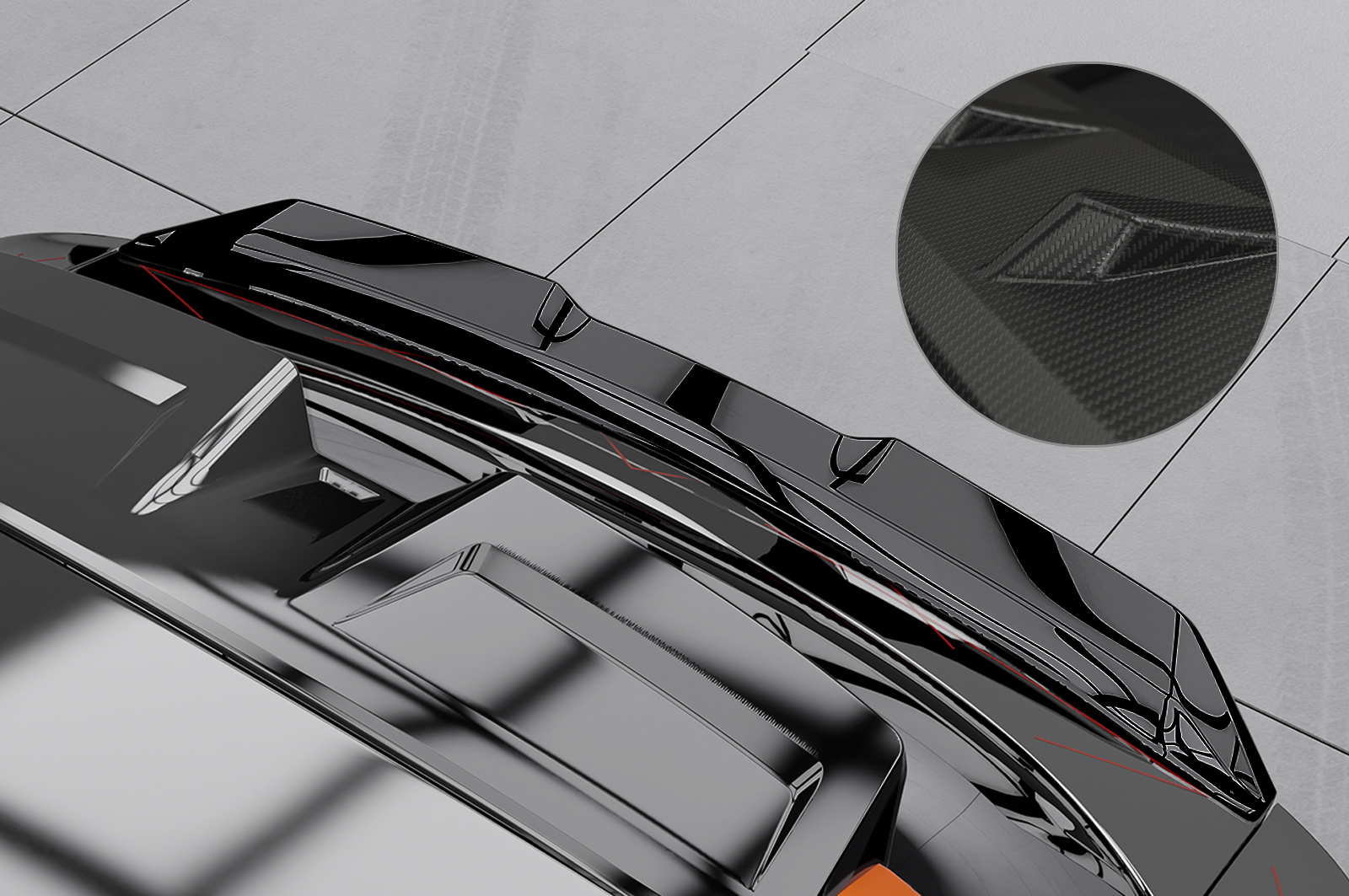 - Heckflügel ist aus hochwertigem Material ABS gefertigt und mit einer Oberfläche in matter Carbon Optik versehen. Zudem weißt die Oberfläche auch die typische Carbon Struktur auf