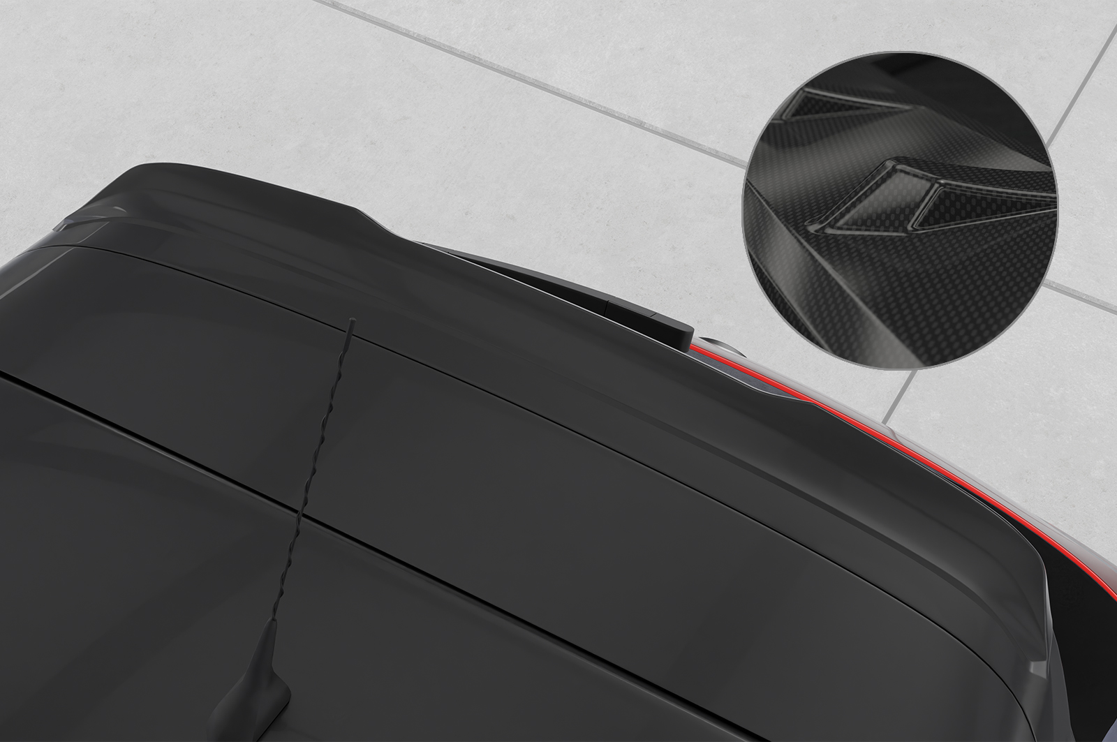 - Heckflügel ist aus hochwertigem Material ABS gefertigt und mit einer Oberfläche in Carbon Optik versehen (Achtung: Schutzfolie nach Montage abziehen)