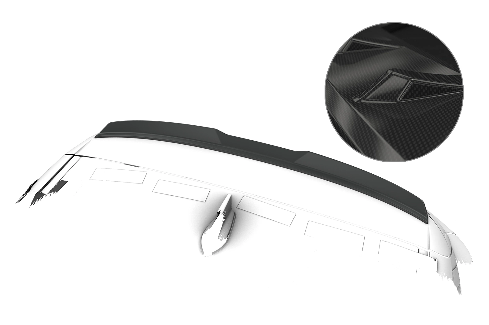 - Heckflügel ist aus hochwertigem Material ABS gefertigt und mit einer Oberfläche in Carbon Optik versehen (Achtung: Schutzfolie nach Montage abziehen)