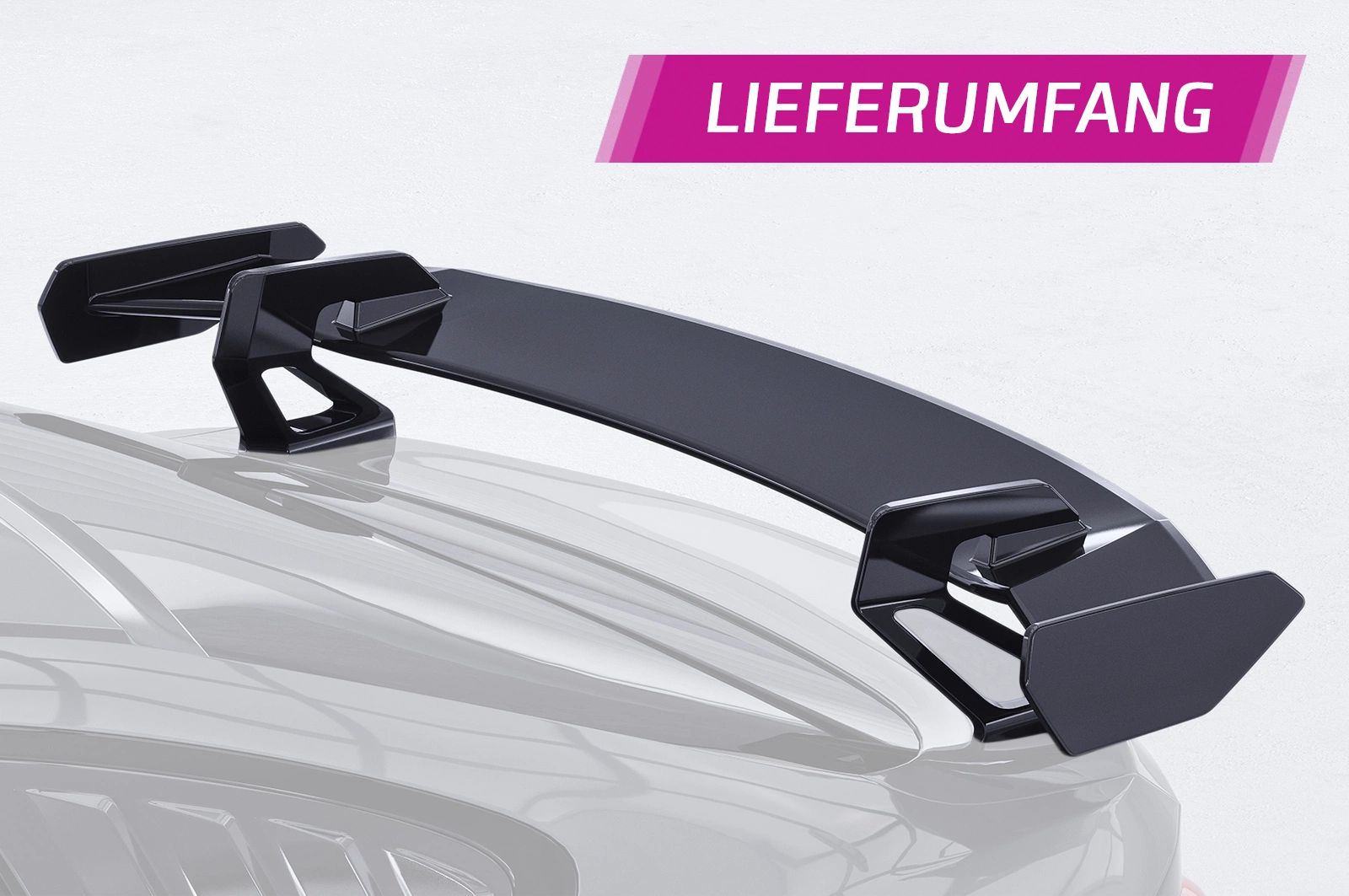 - Schwanenhals Heckflügel-Set bestehend aus Flügelbrett und fahrzeugspezifischen Haltern