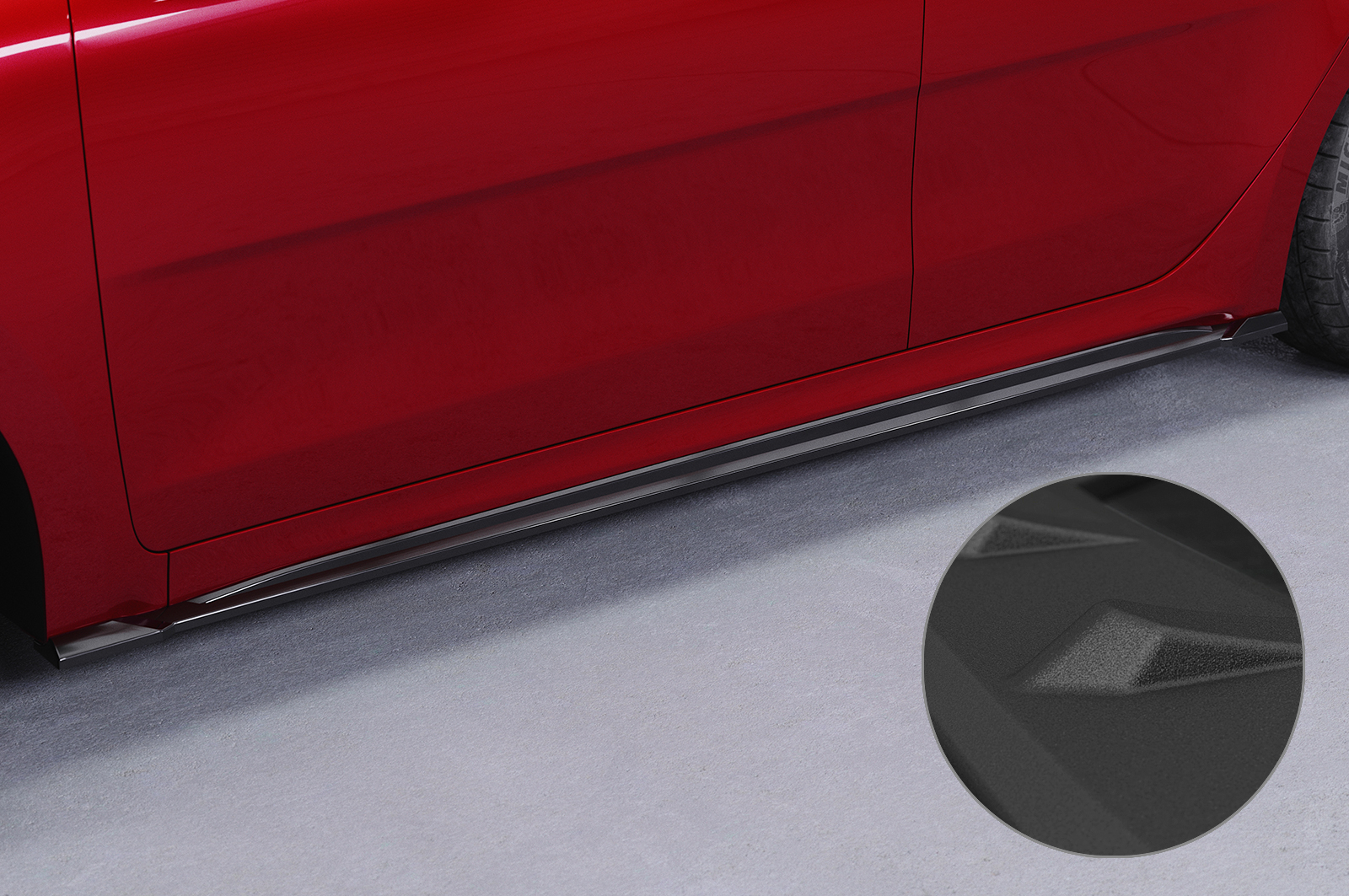 - Seitenschweller sind aus hochwertigem Material ABS gefertigt und mit einer strukturierten (gerillten) Oberfläche versehen, dadurch ist die Spoilerlippe sehr unanfällig gegenüber Kratzern