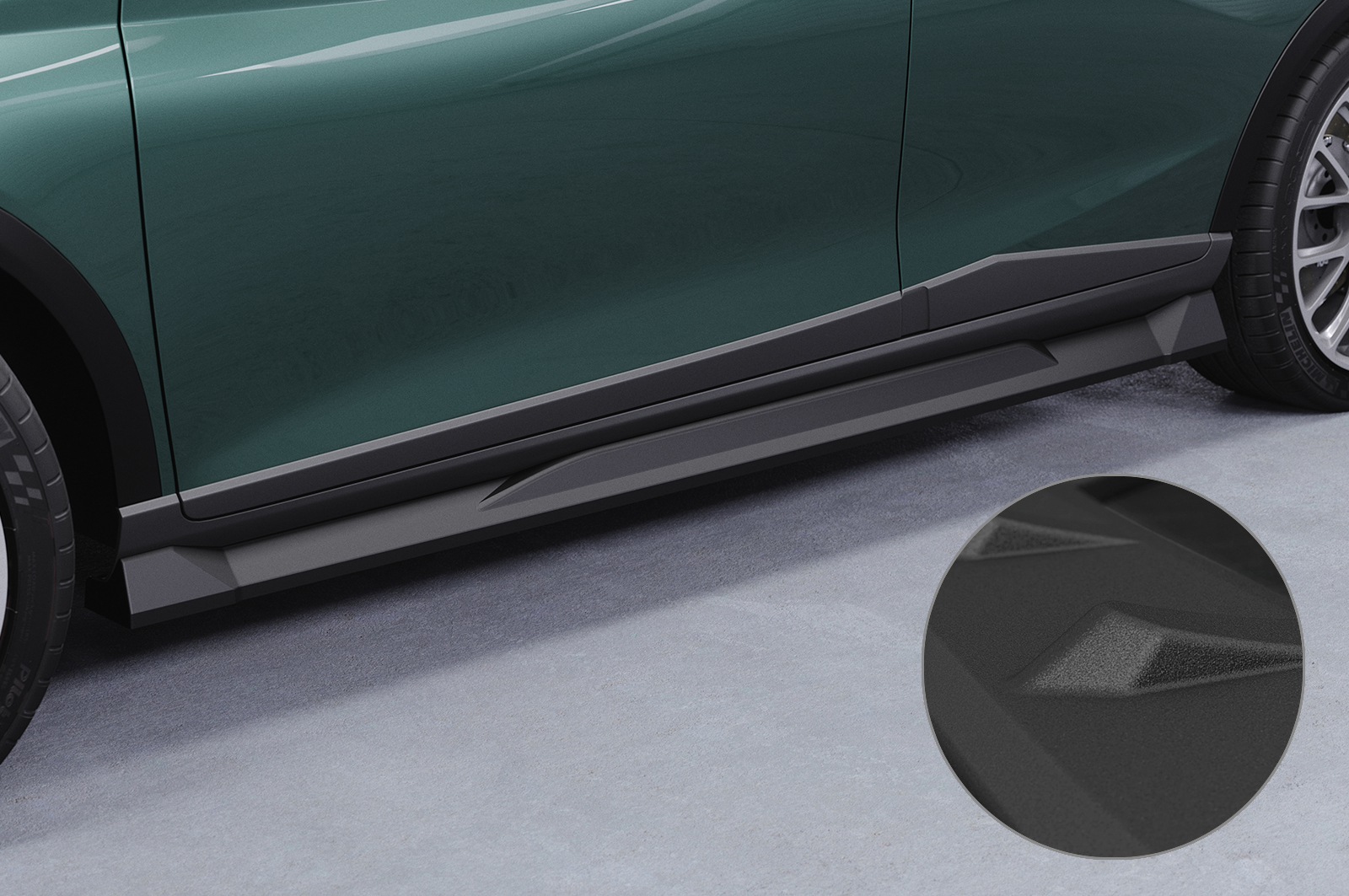 - Seitenschweller sind aus hochwertigem Material ABS gefertigt und mit einer strukturierten (gerillten) Oberfläche versehen, dadurch ist die Spoilerlippe sehr unanfällig gegenüber Kratzern