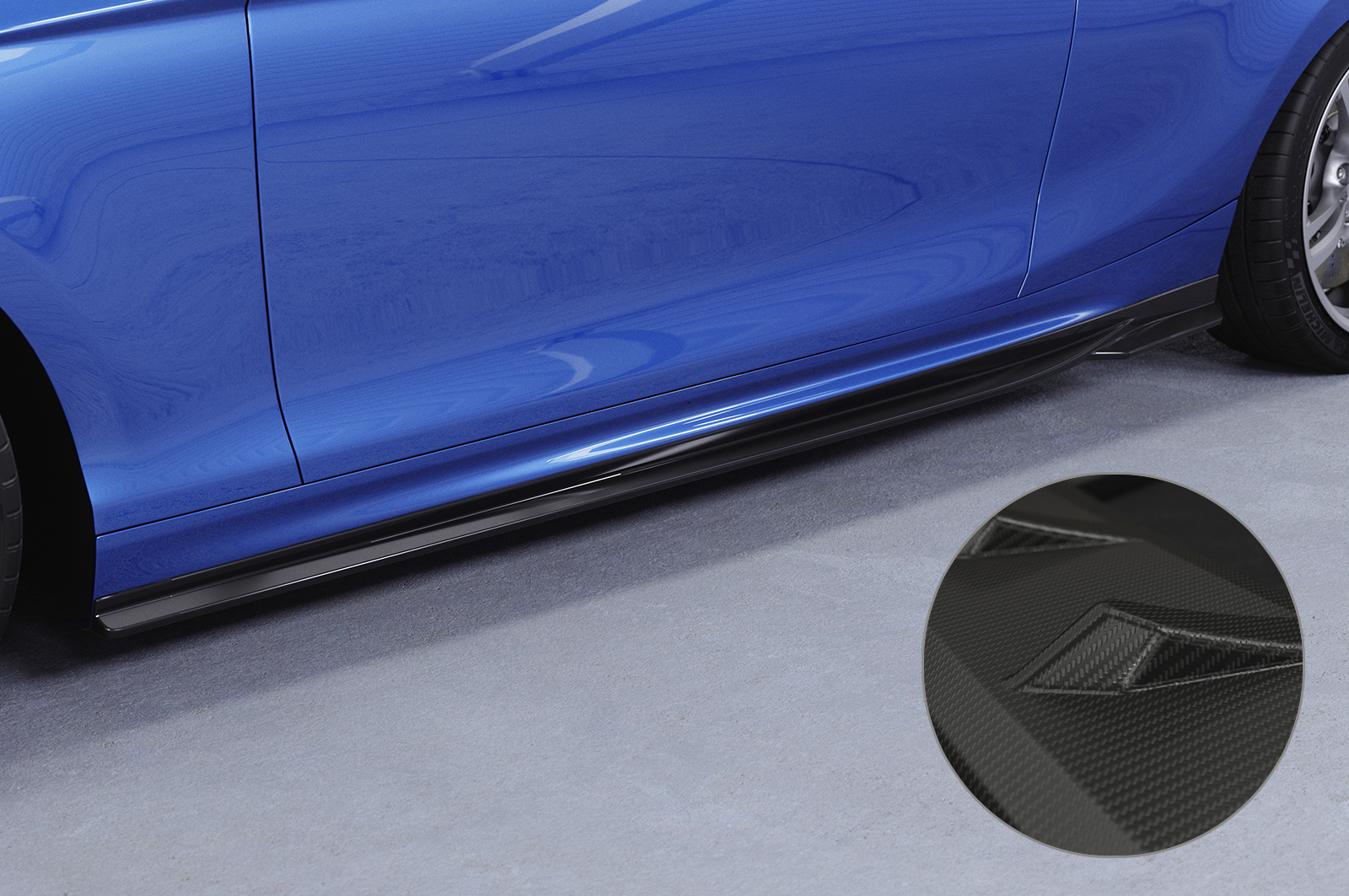 - Seitenschweller sind aus hochwertigem Material ABS gefertigt und mit einer Oberfläche in matter Carbon Optik versehen. Zudem weißt die Oberfläche auch die typische Carbon Struktur auf