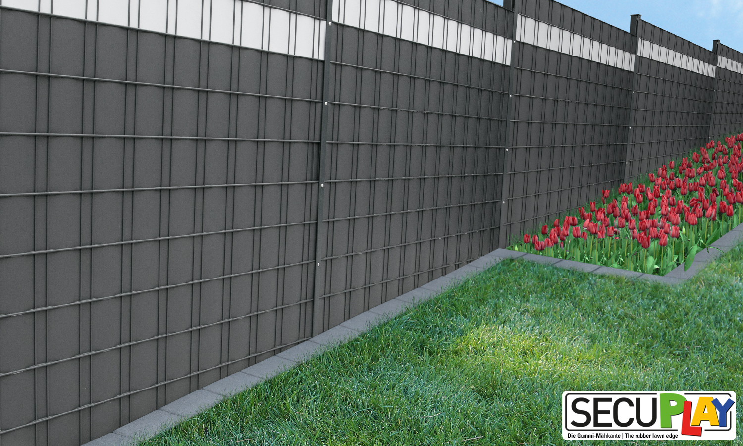 SECUPLAY Gummi Mähkante / Rasenkante 100x10x3,6cm grau