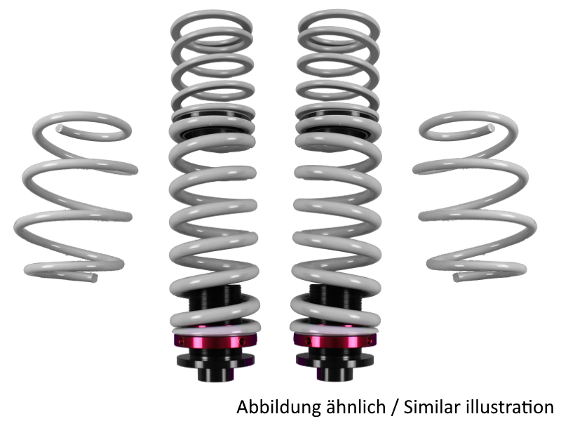 Montage & Hinweise: Tieferlegungsmaß ist Mittelwert aus leichten und schweren Modellen, ggf. alternative Tieferlegung wählen; HA-Federn mit höhenverstellbarer Gewindebuchse; mit Teilegutachten