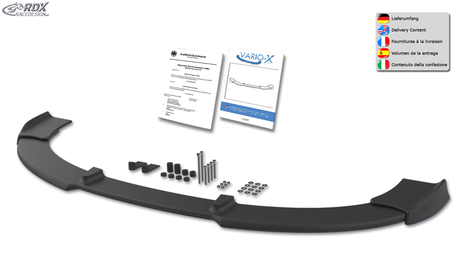 RDX Frontspoilerlippe VARIO-X für SEAT Ibiza 6J, 6J SC & 6J ST Facelift 04/2012+ (nicht FR) Frontlippe Front Ansatz Vorne Spoilerlippe