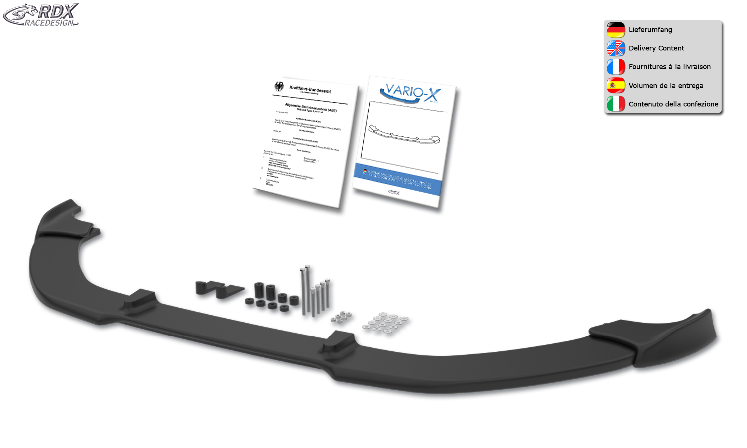 Preview: RDX Frontspoilerlippe VARIO-X für SKODA Octavia 3 (5E) RS Facelift 2017+ Frontlippe Front Ansatz Vorne Spoilerlippe