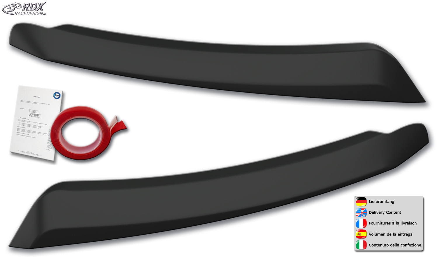 > Die Scheinwerferblenden werden einfach mit dem beiliegenden Montageklebeband auf das Scheinwerferglas geklebt