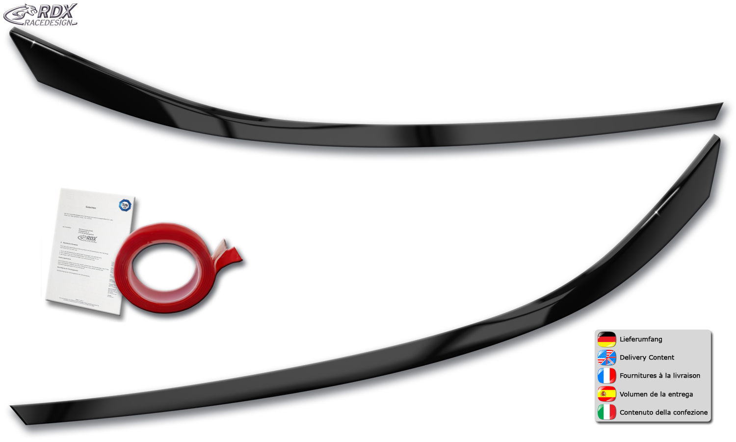 > Die Scheinwerferblenden werden einfach mit dem beiliegenden Montageklebeband auf das Scheinwerferglas geklebt