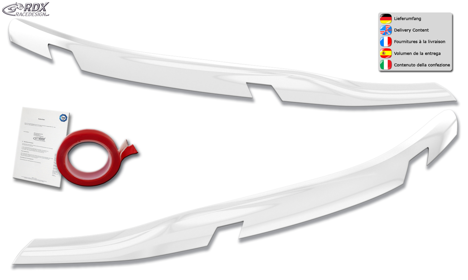 > Die Scheinwerferblenden werden einfach mit dem beiliegenden Montageklebeband auf das Scheinwerferglas geklebt